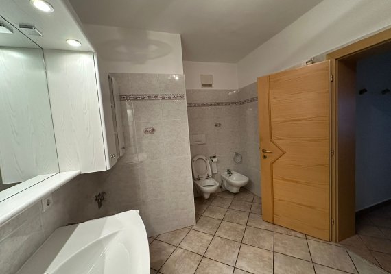 Bei dieser Wohnung ist zu beachten, dass der Weg vom Schlafzimmer in das Badezimmer durch das Wohnzimmer führt (siehe Grundriß)