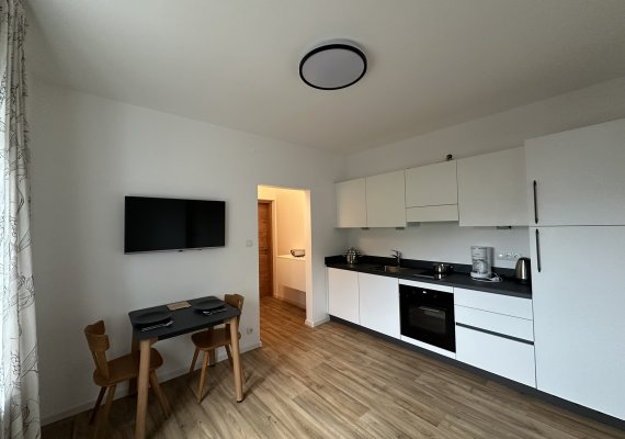 Diese Wohnung ist für 2 Personen geeignet, durch ein Zustellbett und dem Schlafsofa kann jedoch auf bis zu 4 Personen erweitert werden.